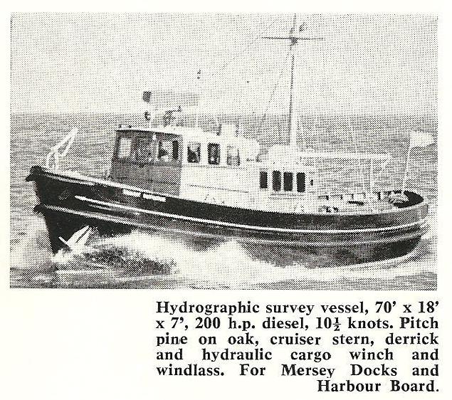 | 1963 | MERSEY INSPECTOR | 75 | Pilot Boat; Built for Mersey Docks and Harbour Board. Sold to Cambrian Sea Fishing Enterprises, Rhyl, on 1 August 1971 and to P. Bowland at Penarth in October 1974. Acquired by Aloha Ltd, Gibraltar in November 1974 and converted to a yacht. She has been sighted near Barcelona in poor condition Could it be this? Photo credit: Unidentified photographer, Tyrrell Advert |