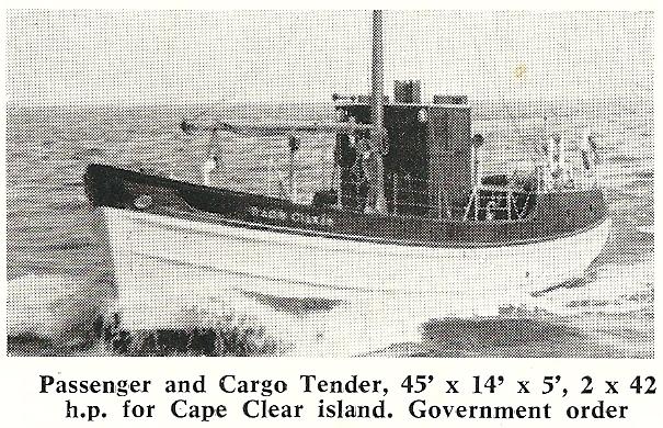 | 1958 | NAOM CIARAN | 45x14x5 | Cape Clear Ferry; Renamed 'Oileán na nÉan' in 1982; Operated by Sherkin Island Ferry Service and taken out of service mid 1990's Currently (2010) at Hegarty Boatyard, Oldcourt, Baltimore being converted to houseboat by Liam Hegarty |