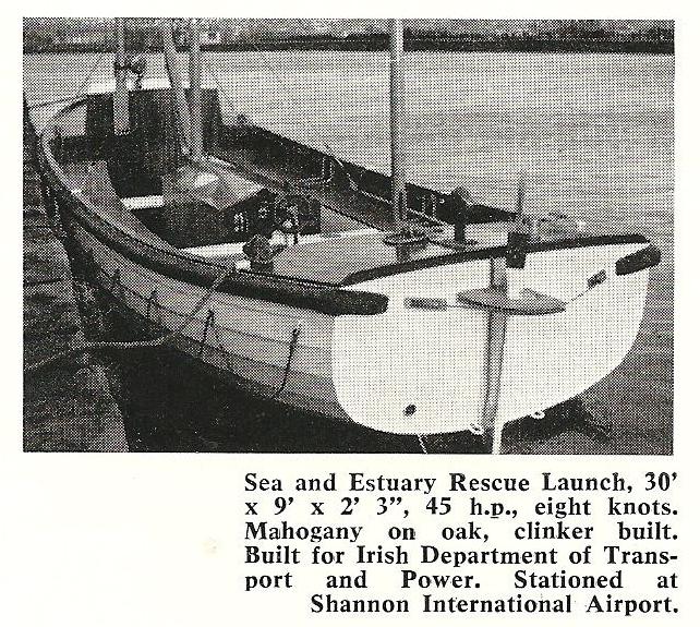 | ? | ???? | 30x9x2.25 | A clinker built rescue launch for Shannon International Airport; Photo credit: Unidentified photographer, Tyrrell Advert |