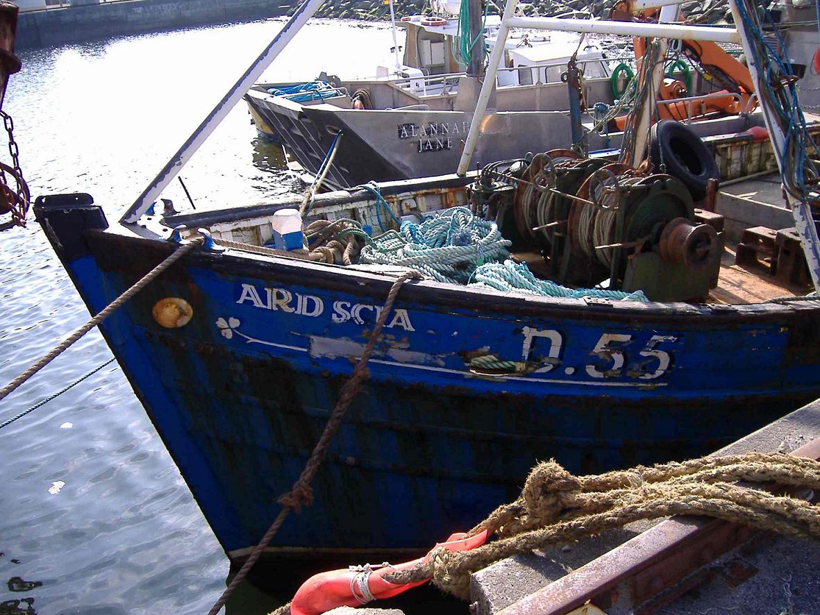 | ARD FIONNBARR | D370 | 1961 | Michael Hannery, ?; Patrick Sugrue, ?; Michael Flannery, Dingle; Patrick Casey, Portmagee; Photo credit:- John Hinde Postcard titled 'Preparing for another days's fishing off the Kerry coast' by David Noble; Still at Portmagee in 2006; Photo credit:- Liam Relihan, Limerick [liamr] on Flickr.com |