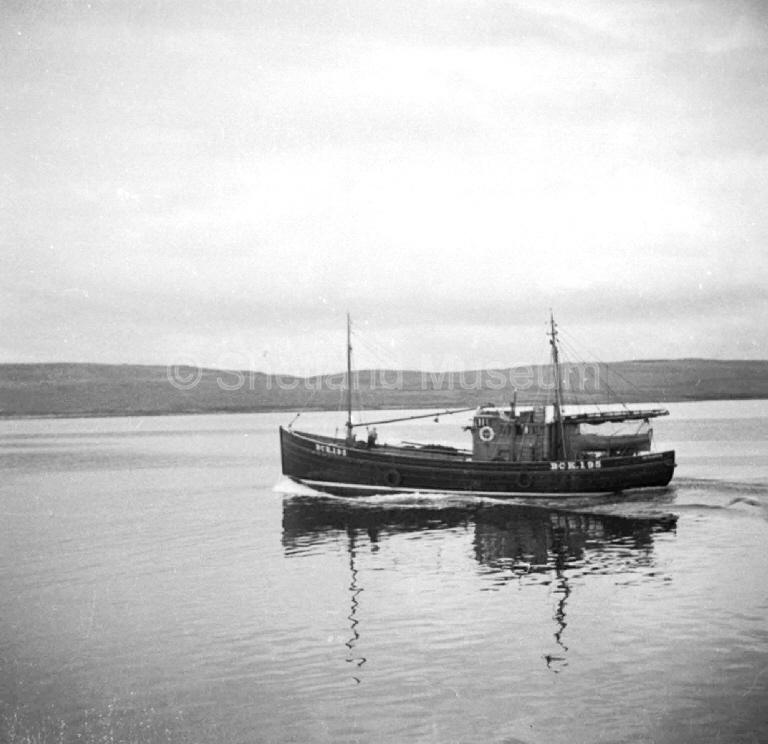 | META BRUCE | D195 | 1948 | Unidentified English boatyard | BCK195; Photo credit:- J Hughson, Shetland via Shetland Museum; To Dublin registration D195 in 1963; Photo credit:- Unidentified photographer, via National Library of Ireland, Dublin; Appears to be lying derelict at Clonderalaw Bay, near Knock, Co. Clare; Photo credit:- Martin Hodgson [witzendwizard1] on Flickr.com |