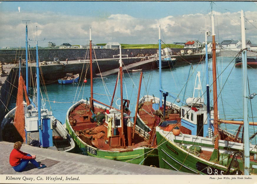 | ? | Kilmore Quay. Various boats Names required for the one drying in the middle of the harbour, the one against the far quay, and two boats having blue paint on the wheelhouse. Photo credit:- Joan WIllis, John Hinde Studios |