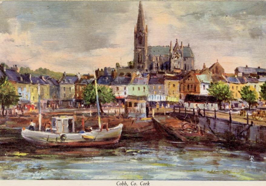 | ? | What looks like a 50 footer at Cobh, Co. Cork. Oil painting by unspecified artist at the Irish School of Landscape Painting Photo credit:-John Hinde Ltd, Cabinteely. |
