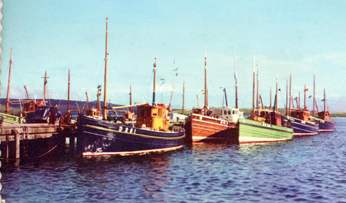 | Killybegs view, circa 1962 | (L to R) Girl Eileen (D13), Brothers Hope (D247), Pursuit (SO85) and Ard Aidhm (D378); Killybegs, Co. Donegal about 1962 Photo credit:- Phillip, New Zealand [PhillipC] on Flickr.com |