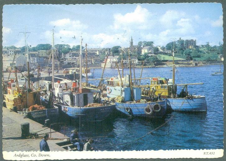 | ? | Ardglass Harbour, Co. Down circa-1960 Three 56 footers and a much more beamy boat. Photo credit:- Unidentified photographer, postcard published by Valentines, Dundee. Ref.no. RT 452 |