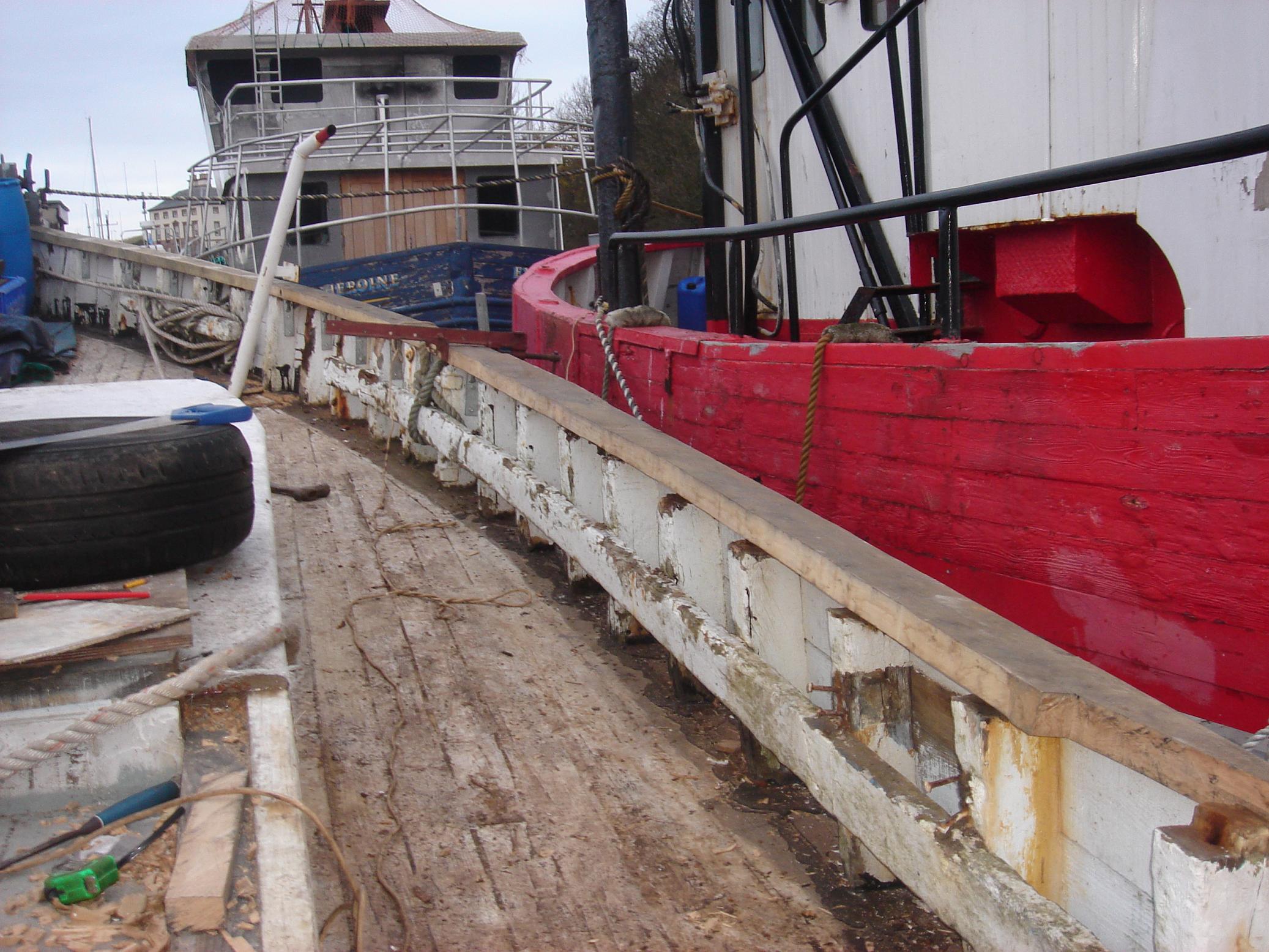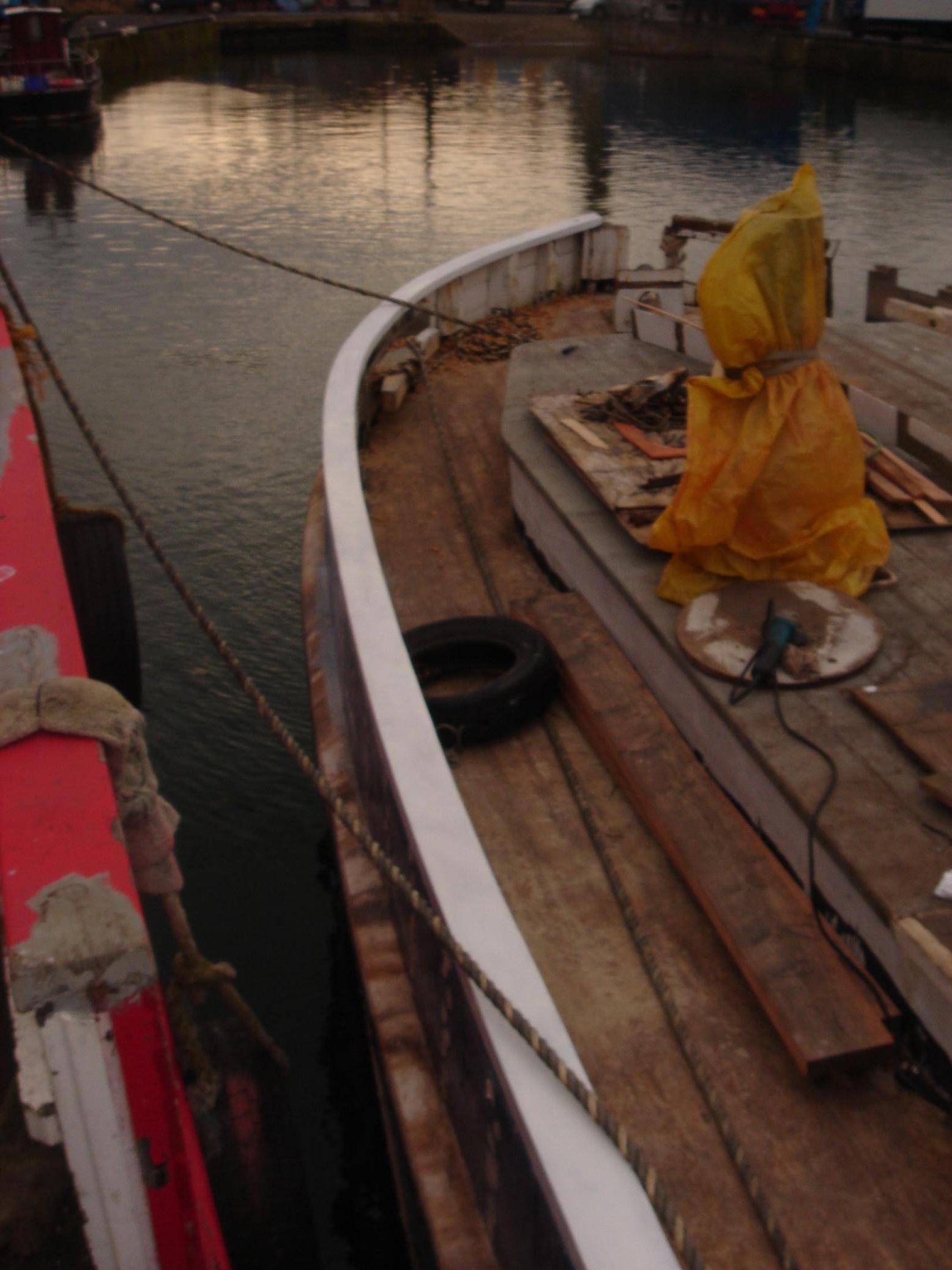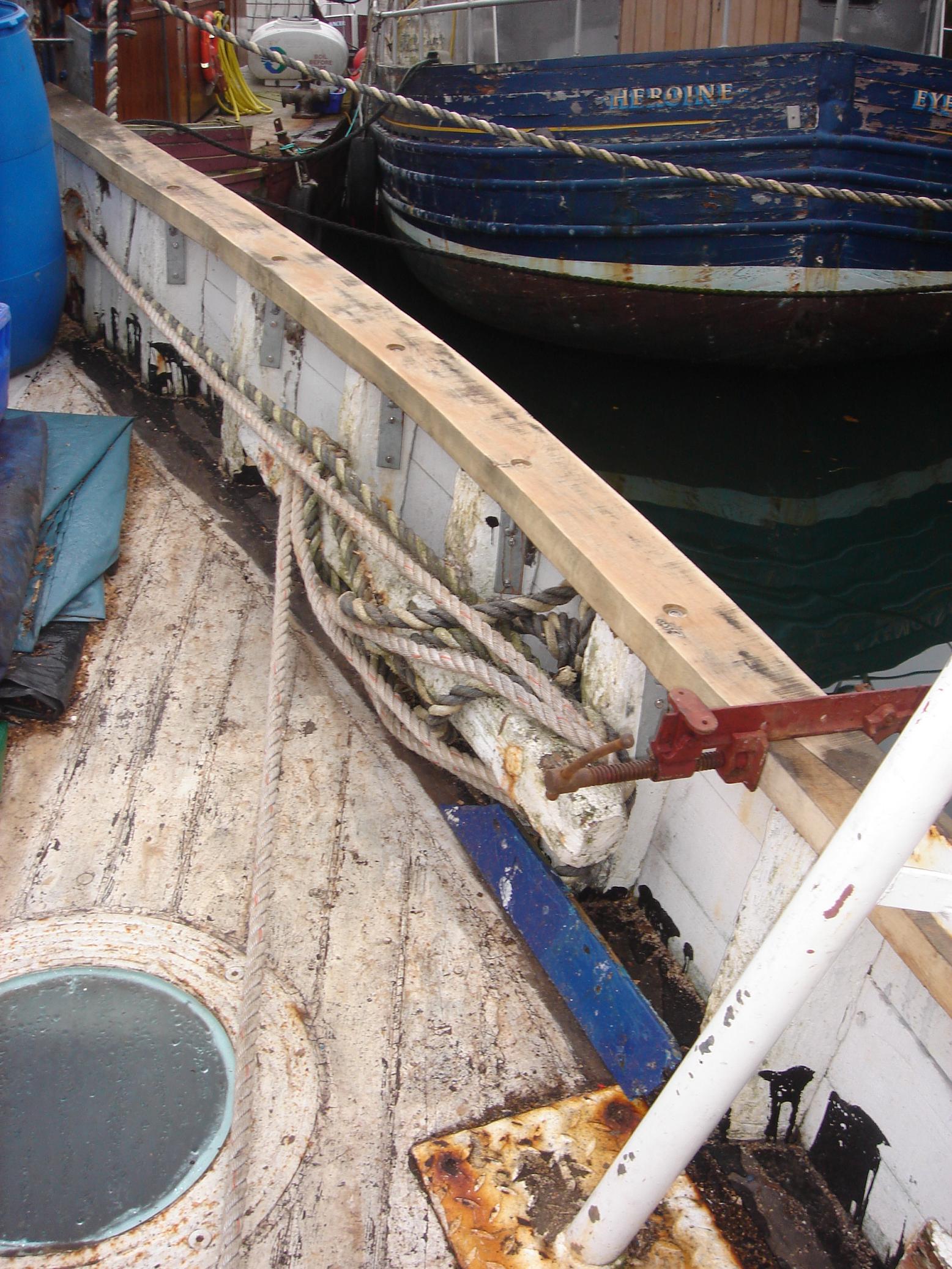 | 08/11/2013 | The rubbing strake, port side has a new top surface. Originally to be replaced but a 7"x3.75" beam, through bolted, was just too much… | DSCN4179 |