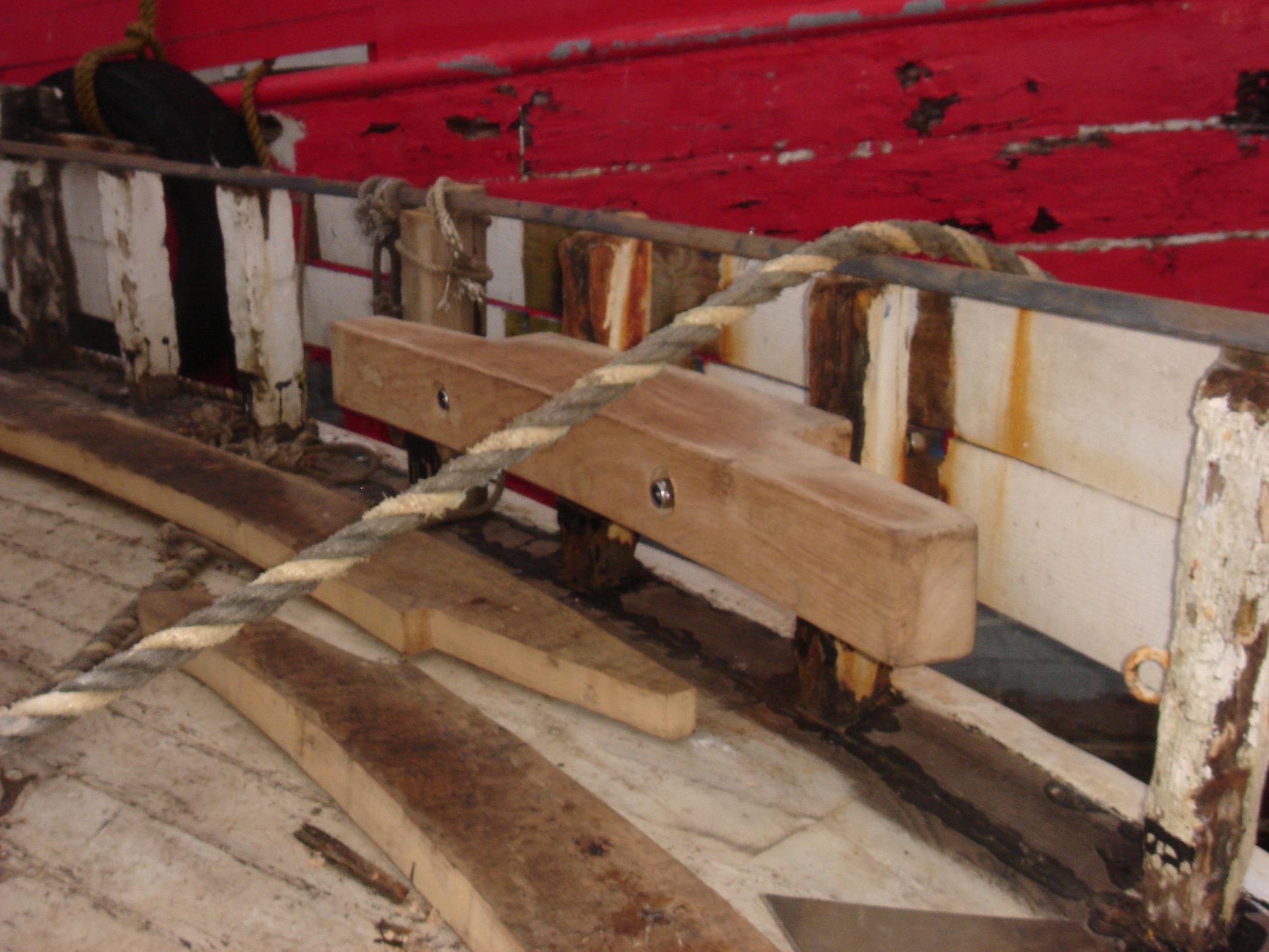 | 14/07/2013 | The new curved pieces for the starboard side are just gravity mounted at present. Waiting for some oak to go down below first | DSCN4119 |