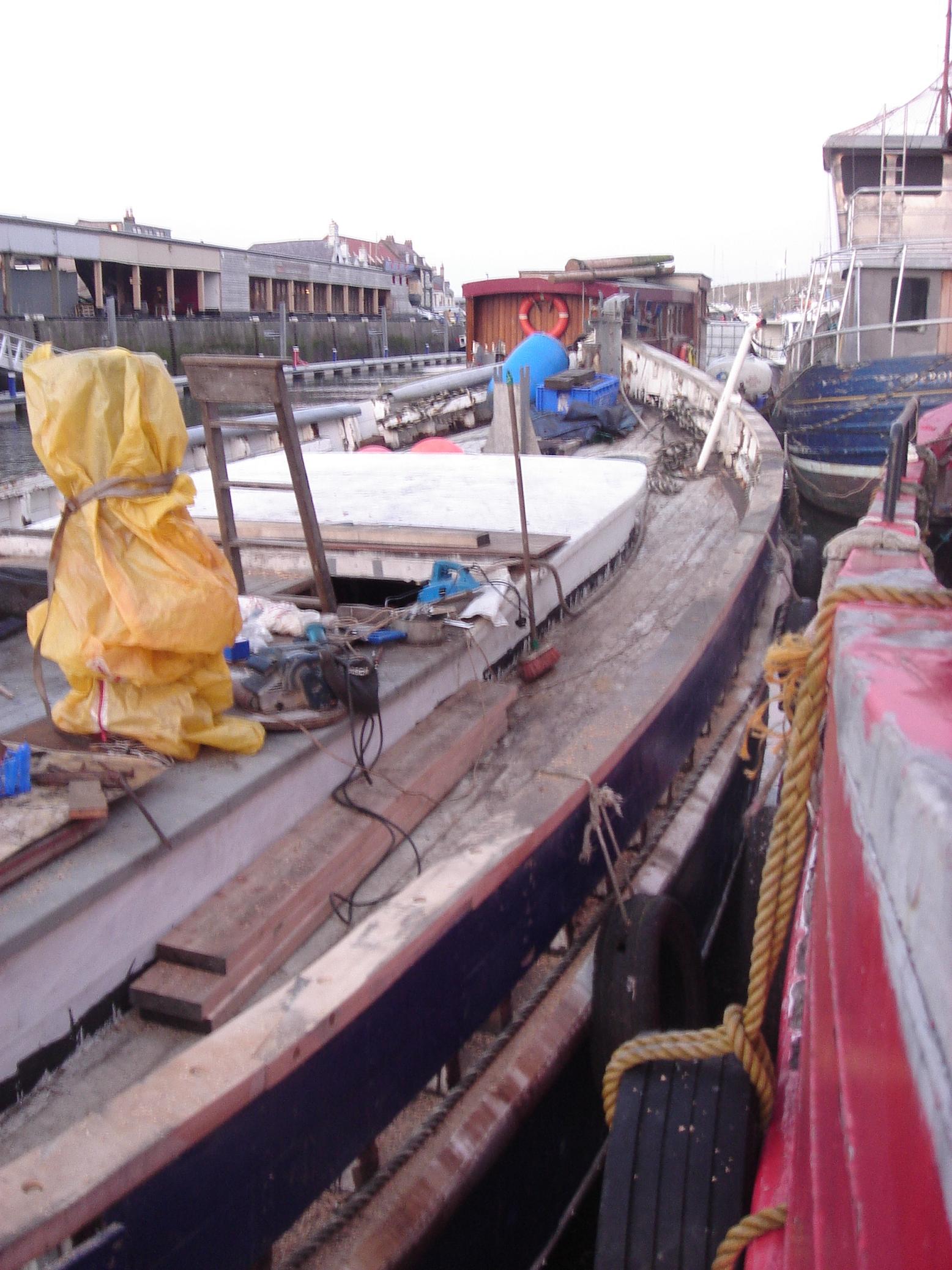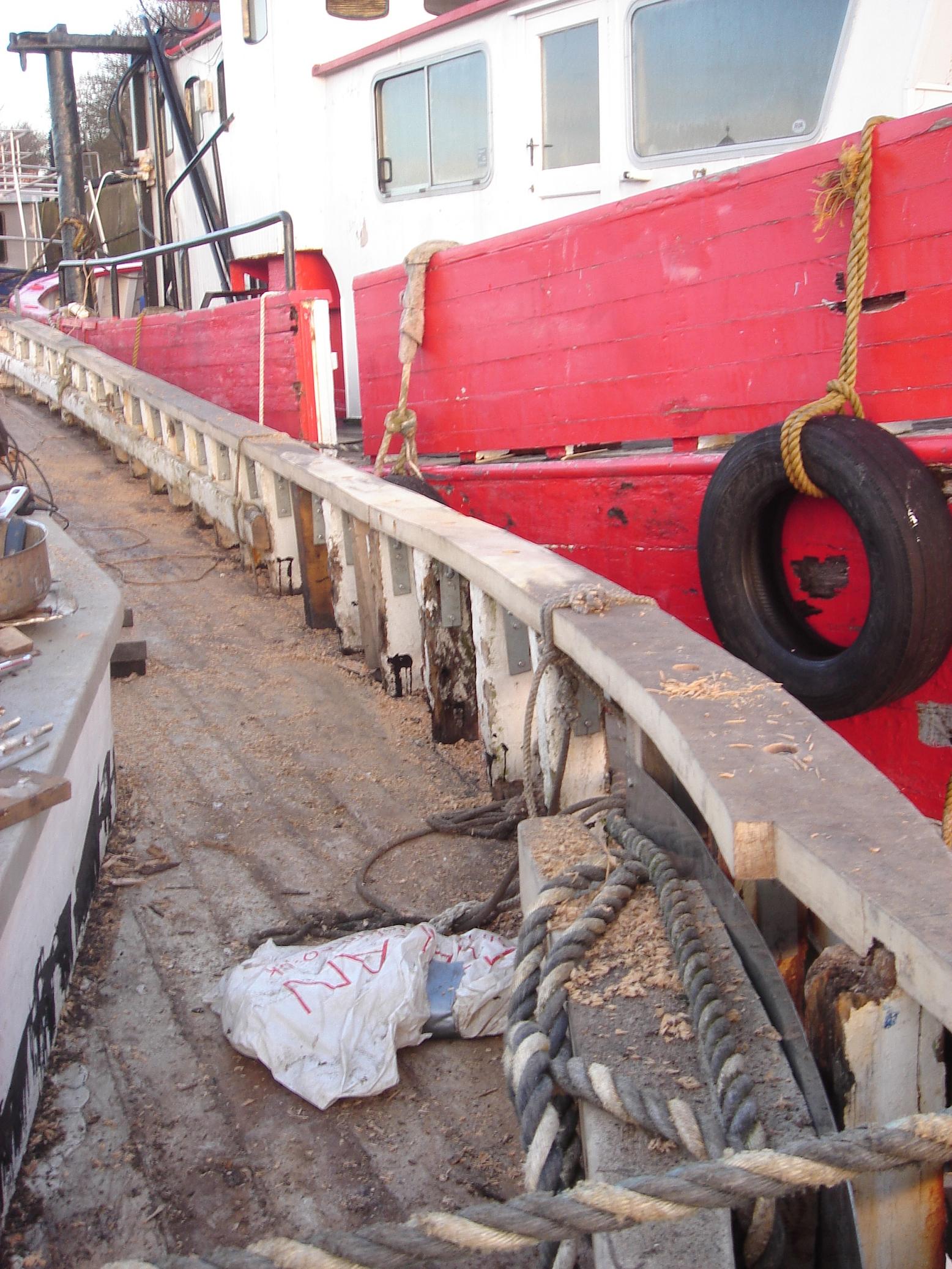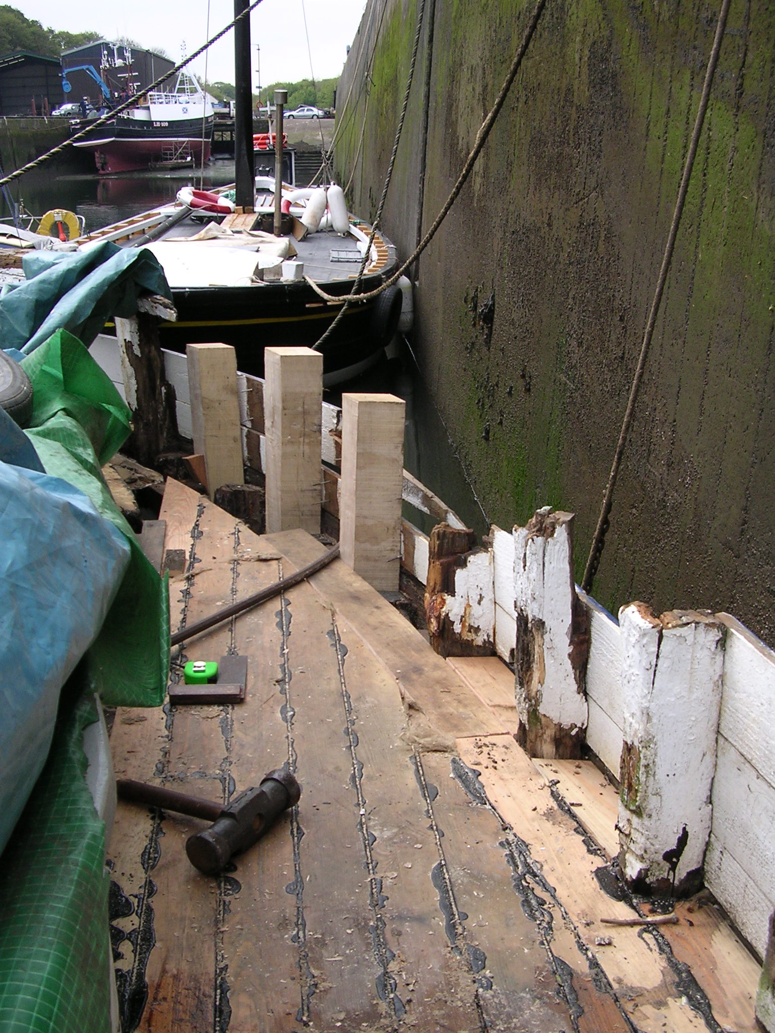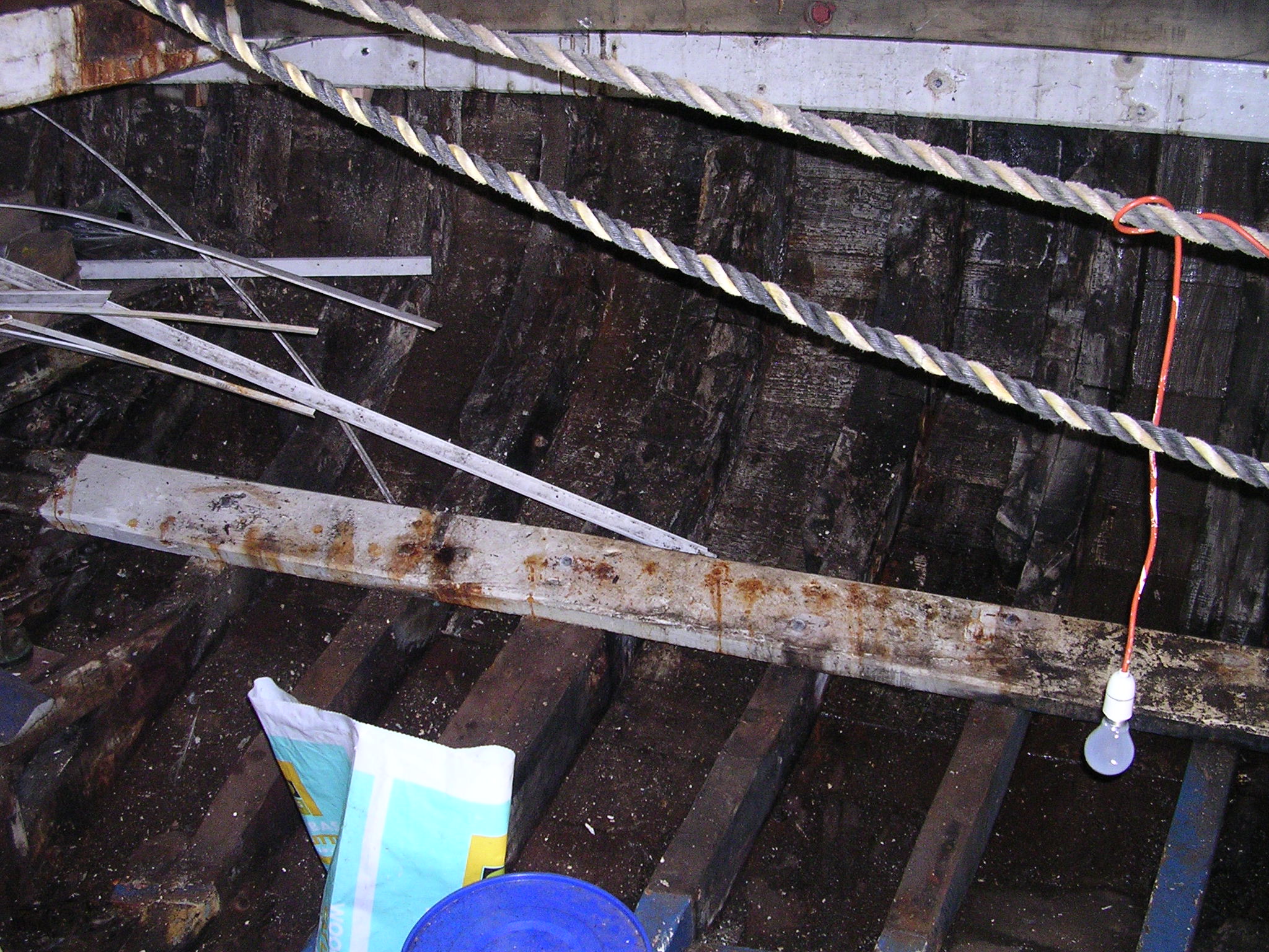 | 01/11/2013 | Not a good move, turned round so that I can work on the port side. Lot of rot and will have to replace 3 x 10m lengths of hull plank | DSCN4173 |