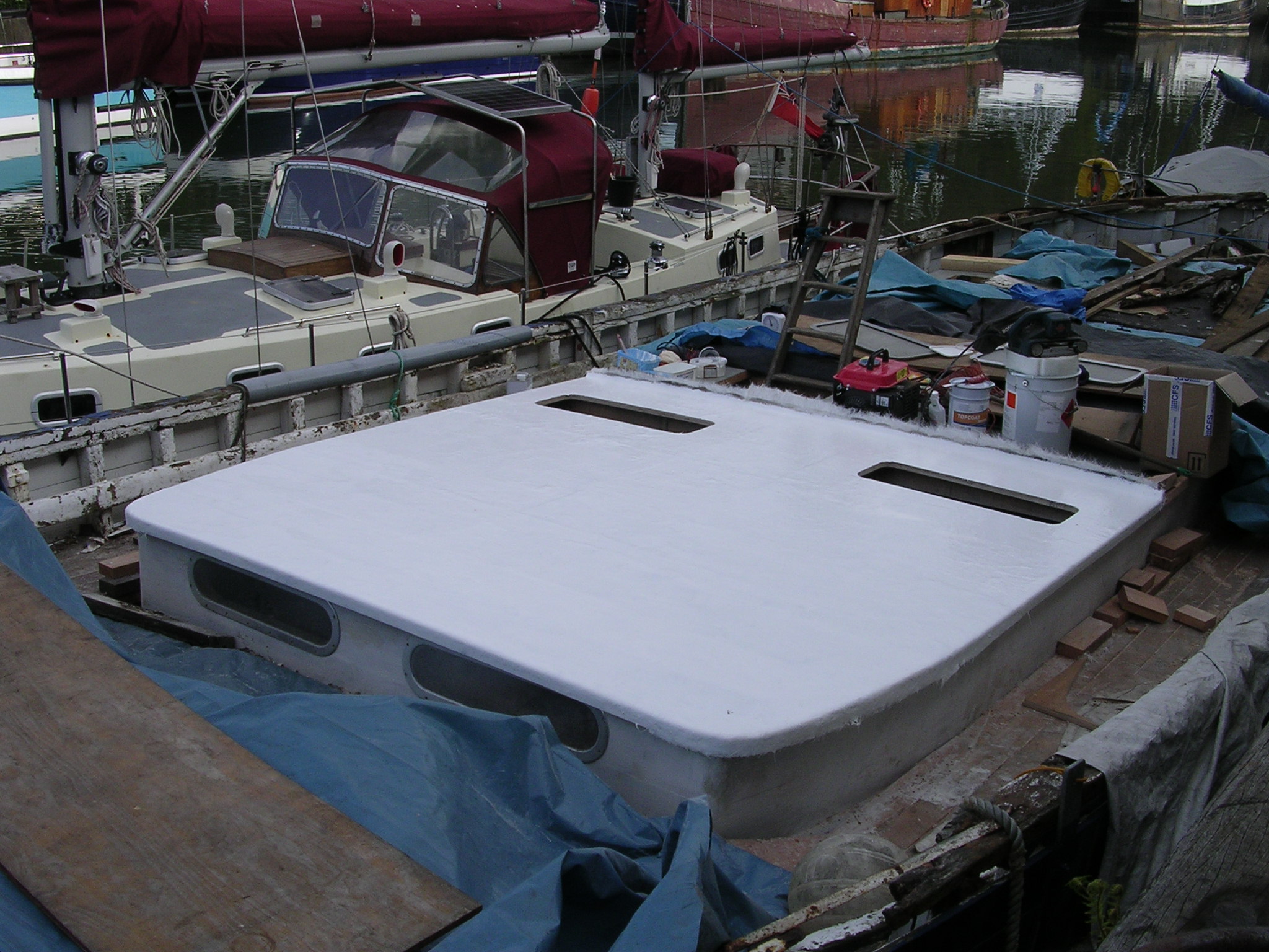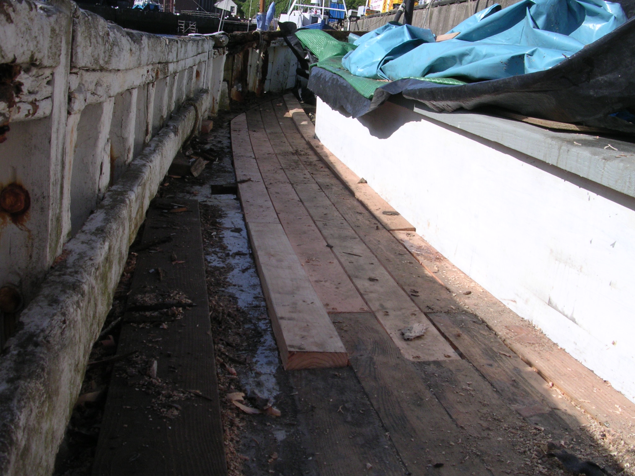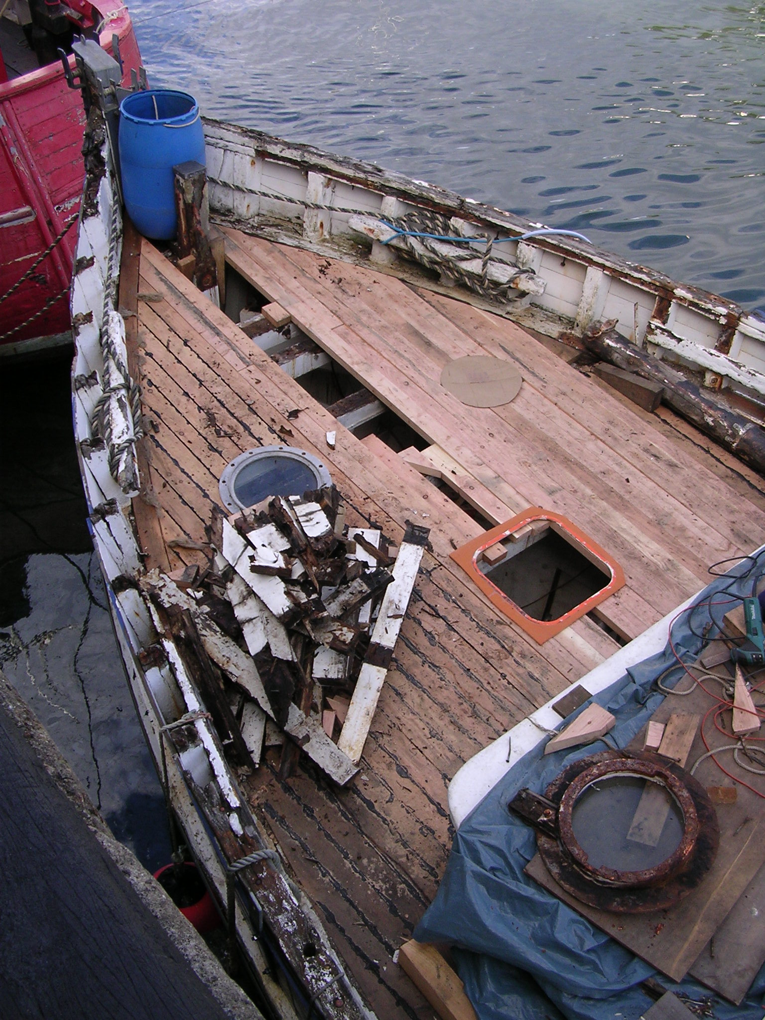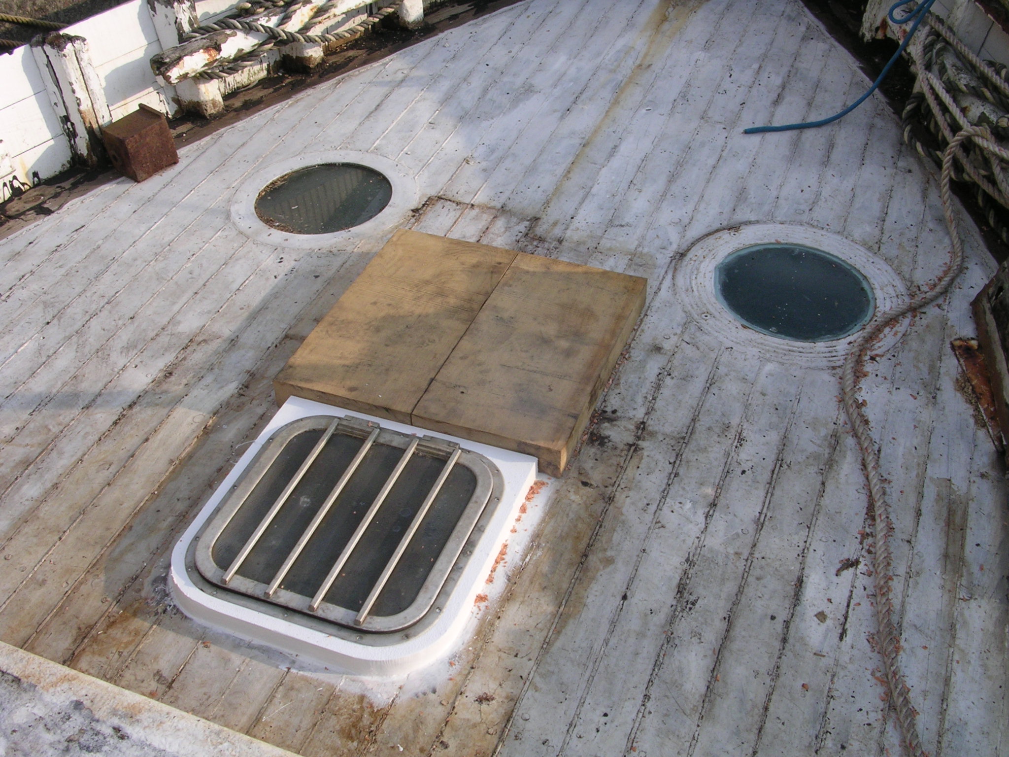 | 30/05/2013 | The small hatch that carried the belt drive to the original winch is now gone and this is where the deck porthole and escape hatch will go | DSCN4047 |