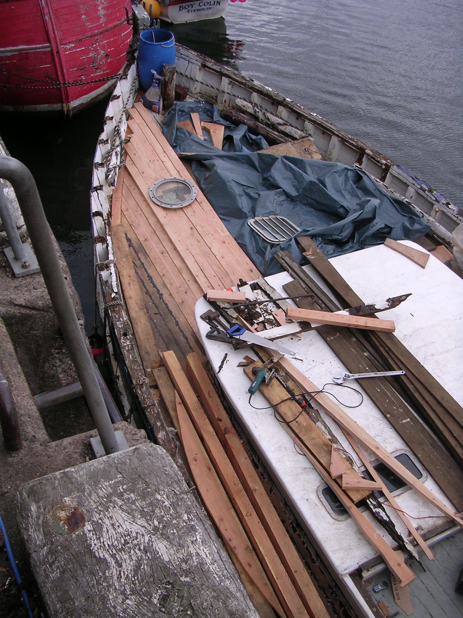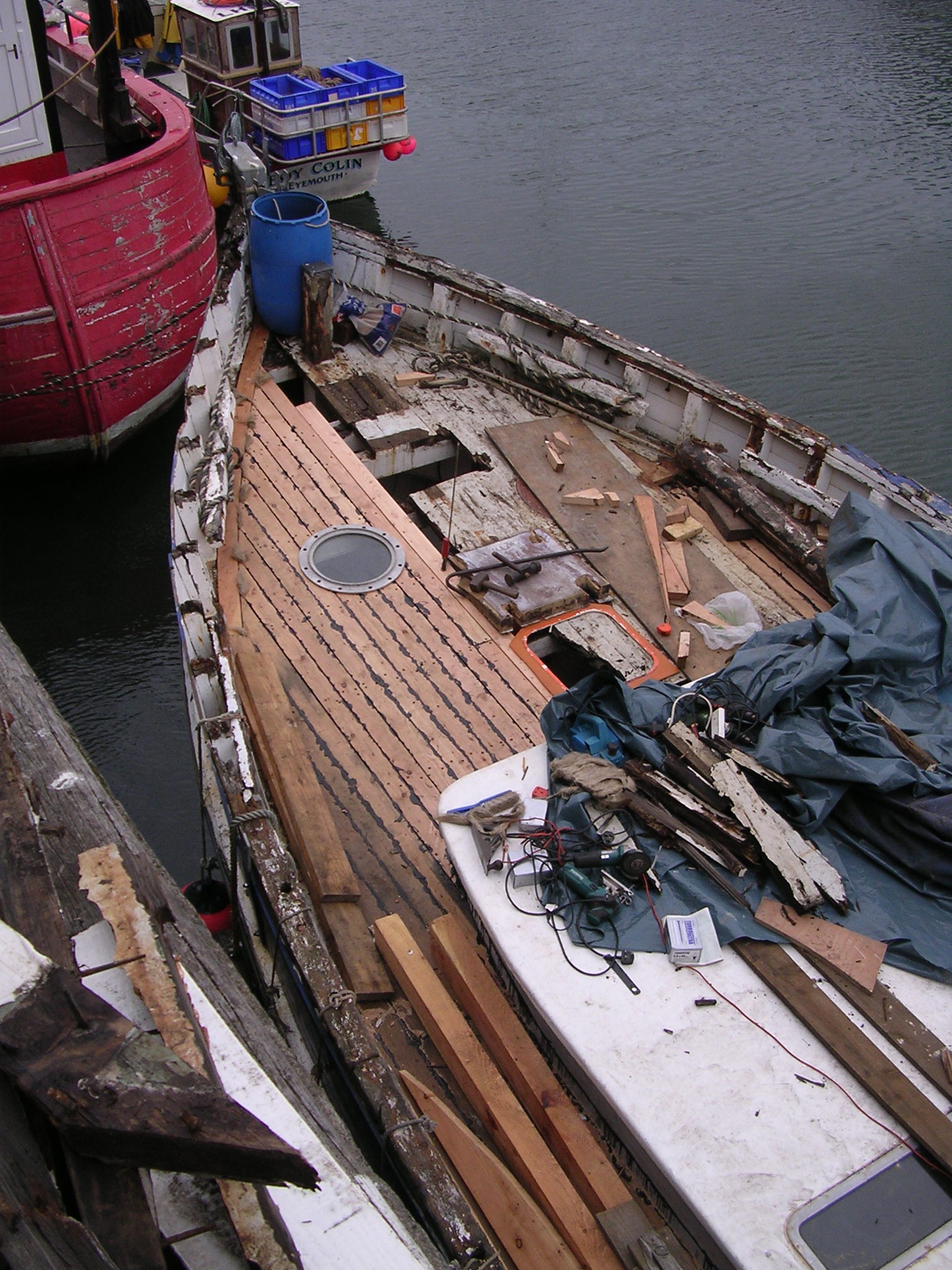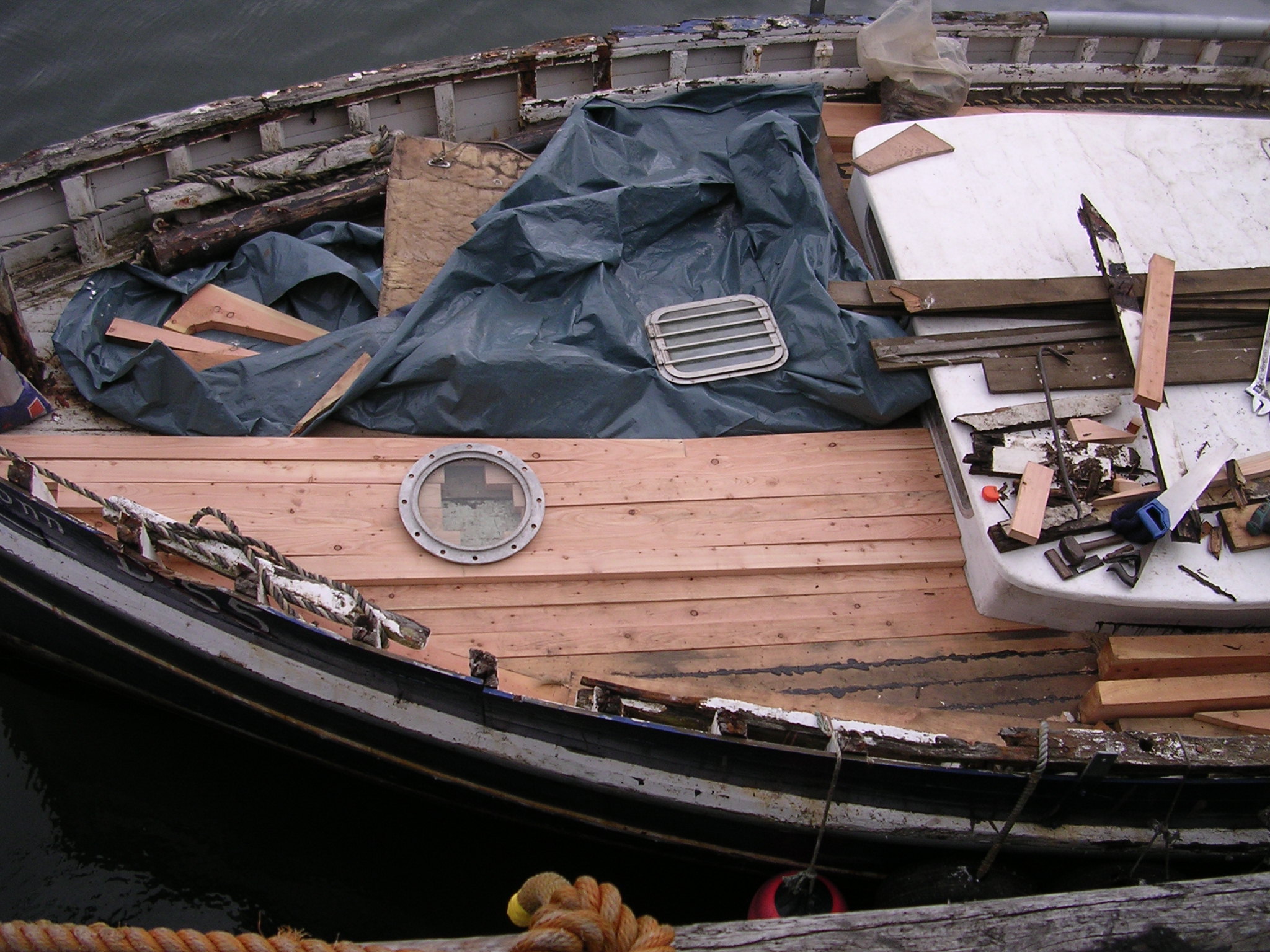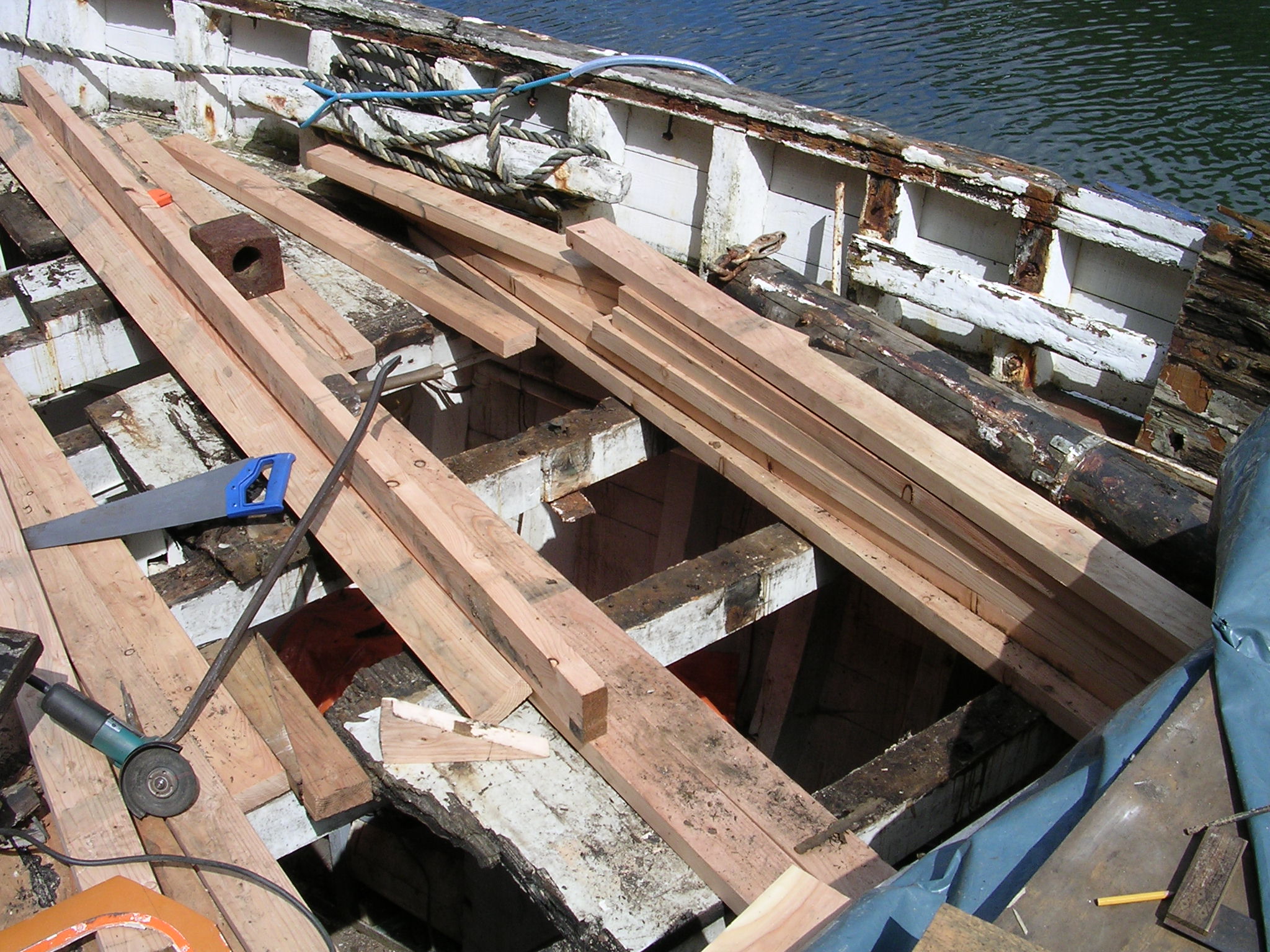 | 30/05/2013 | The small hatch that carried the belt drive to the original winch is now gone and this is where the deck porthole and escape hatch will go | DSCN4047 |