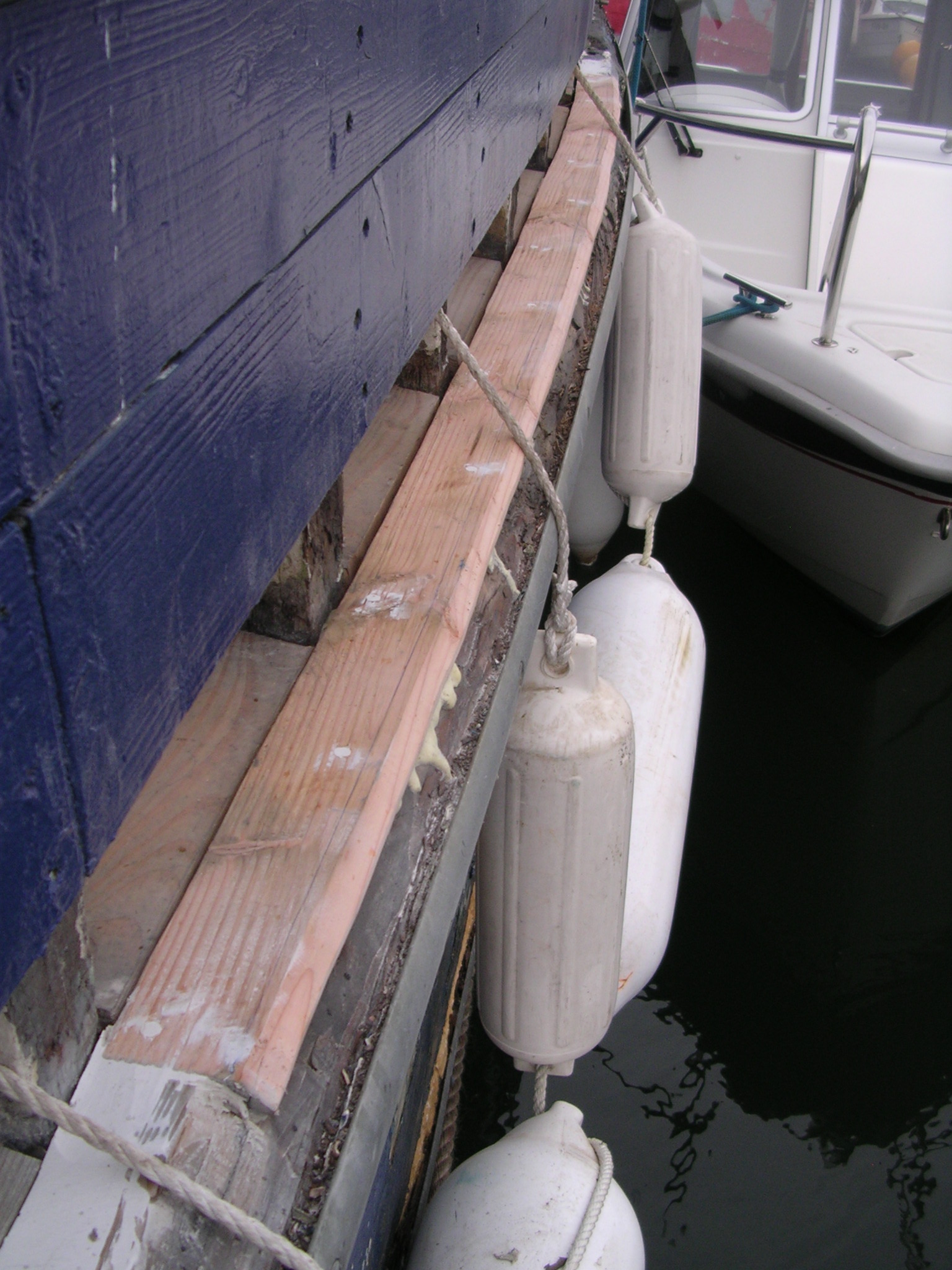 | 24/08/2013 | Haven't been over the side to look at the hull for a while and this moth eaten butt-end was hiding behind on of the tyre fenders | DSCN4140 |