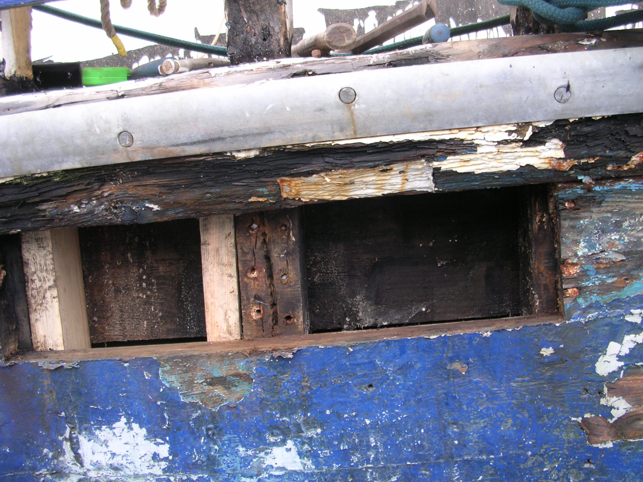 | 27/05/2013 | I was going to patch the rubbing strake but it is too far gone… time to order up some 7" by 3.75" larch | DSCN4044 |