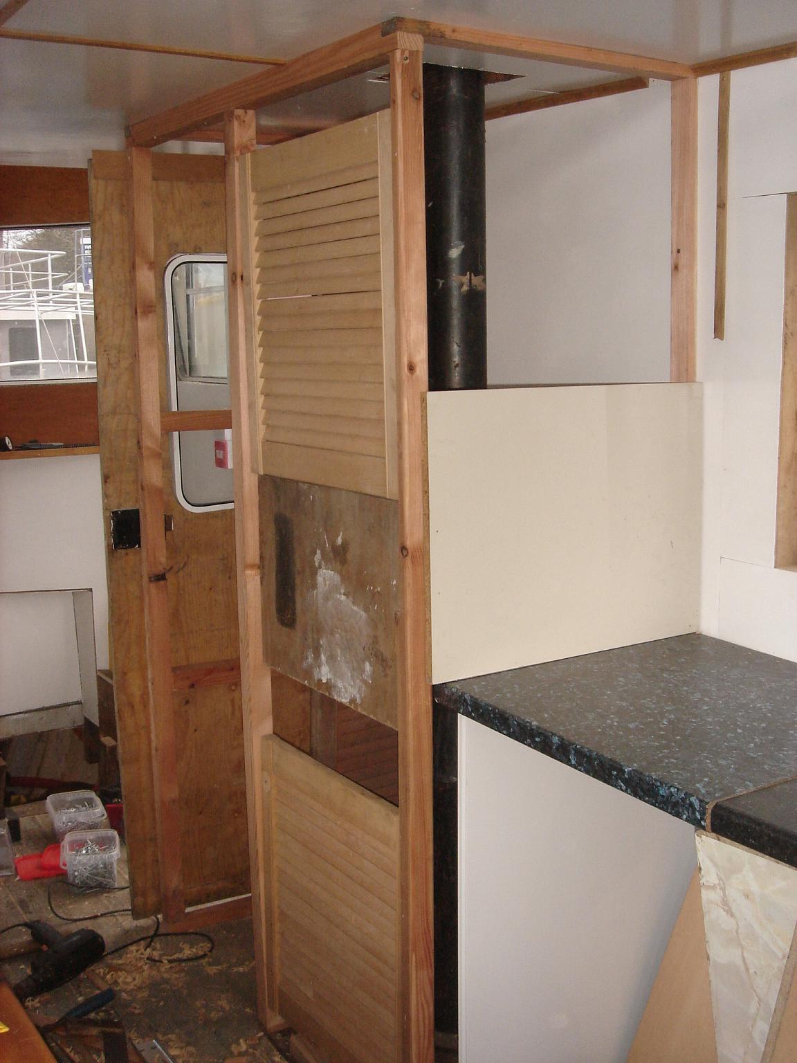 | 01/01/2016 | Beside the galley is the exhaust which I will box in to form a dryying cupboard with louvre doors. Frame in place | DSC02415 |