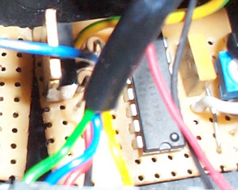Drive Control Ruf Dougal's traction motors are controlled by 2 off 4QD NCC60-24's wired in 10mm squared panel flex wire and mounted in die cast boxes. Each box has been fitted with a 12v computer PSU fan (also running at 24v) and drilled to give forced cooling. The die cast boxes were then pop riveted vertically to a piece of aluminium treadplate for additional cooling, underside protection and ease of mounting to the chassis. All aluminium interfaces were smeared with heat sink compound to keep the controllers cool.Each motor was taking about 120 Amps at clutch slip. So to achieve somewhere near this current the controllers have to be kept as cool as possible. Motor Controllers Ruf Dougal's traction motors are controlled by 2 off 4QD NCC60-24's wired in 10mm squared panel flex wire and mounted in die cast boxes. Each box has been fitted with a 12v computer PSU fan (also running at 24v) and drilled to give forced cooling. The die cast boxes were then pop riveted vertically to a piece of aluminium treadplate for additional cooling, underside protection and ease of mounting to the chassis. All aluminium interfaces were smeared with heat sink compound to keep the controllers cool.Each motor was taking about 120 Amps at clutch slip. So to achieve somewhere near this current the controllers have to be kept as cool as possible. Interface Board Ruf Ruf Dougal was originally set up with the 'Delbots' interface board which was very easy to set up and appeared to work fine but the range was only about 3 meters even with all motors disconnected etc. After some discussion with Derek Foxwell (Robot Wars Technical guy and Delbots founder) it was decided that there was a problem working with my Radio Control gear. (They had also found some problems with some gyros). Given the time constraints I changed to the much less user friendly 4QD DC-111 board driven by 2 potentiometers. This of course needed a separate ignition circuit and failsafes. Ignition The 4QD board has an ignition switch connector which is needed to prevent the robot creeping with the sticks in the off position. I controlled this with a home made 'Ken Hewitt' switch, diagrams of which can be found on his website. See the 'Links & Thanks' and 'Constructor Tips' pages on this site. Failsafes My Radio gear had inbuilt failsafes and sufficient spare channels to include a separate ignition channel. See the 'Radio Control' page on this site.