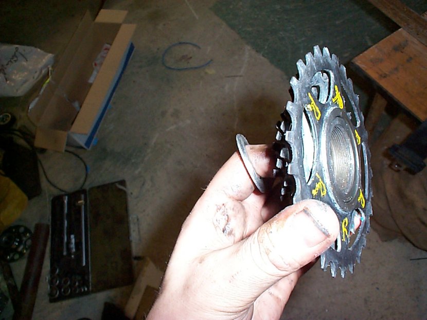 Drive System Ruf Ruf Dougal has two central drive wheels, which steer by differential speed. The front and back of the armour is supported on small castors. Motors The drive starts with two car electric steering motors which weigh 2.9kg each. They have an in built friction clutch set to 9Nm and run at 1800rpm. Over running them at 24V gives a rotational speed of 3600rpm. At clutch slip the motors are taking 120 amps. Transmission Drive is by derailleur bicycle chain using a 5 speed block with the freewheel pegs removed as a lay shaft. The chains are tightened by twisting the motors and eccentric wheel spindles. To give lateral chain support nylon guides are positioned either side of each chain.