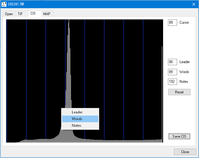 The Leader threshold can be deployed where the roll is significantly darker at the start. This overrides the Words threshold for the Leader Length defined in the CIS Options dialog.