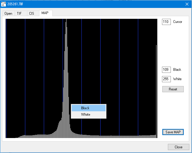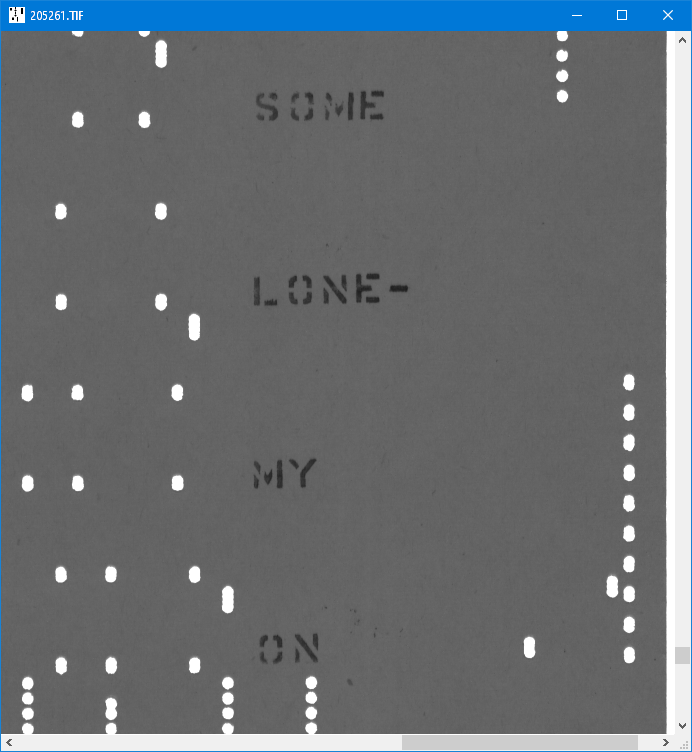 MAP files are used with Wayne Stahnke's punch matrix recovery software. There are eight shades of grey, with the roll at black level, the holes at white level, and intermediate levels at the transitions between the two.