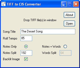 Notes Split (0-255) sets the threshold between the note holes and the background (it has no effect with 1-bit monochrome TIFF files).