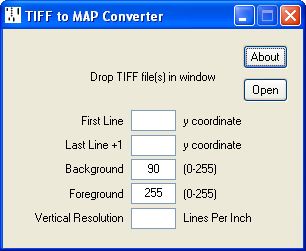 TIFF2MAP converts 8-bit greyscale uncompressed or LZW encoded TIFF image files to Wayne Stahnke's 3-bit greyscale MAP format.